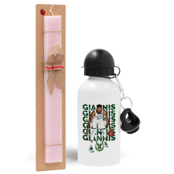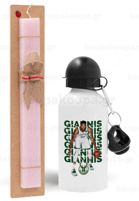 Giannis Antetokounmpo, Easter Set, metallic aluminum bottle (500ml) & aromatic flat Easter candle (30cm) (PINK)