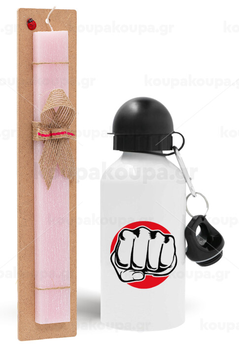 Punch, Easter Set, metallic aluminum bottle (500ml) & aromatic flat Easter candle (30cm) (PINK)