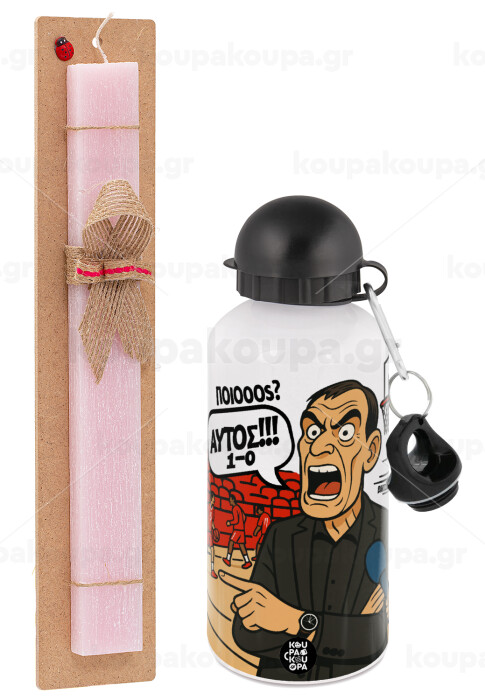 Μπαρτζό, Ποιος? Αυτός!!! 1-0, Easter Set, metallic aluminum bottle (500ml) & aromatic flat Easter candle (30cm) (PINK)