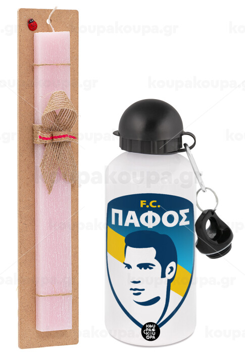 Πάφος FC, Easter Set, metallic aluminum bottle (500ml) & aromatic flat Easter candle (30cm) (PINK)