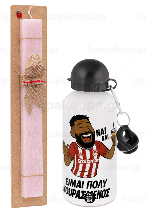 Ροντινέι, "ΠΟΛΥ ΚΟΥΡΑΣΜΕΝΟΣ", Easter Set, metallic aluminum bottle (500ml) & aromatic flat Easter candle (30cm) (PINK)