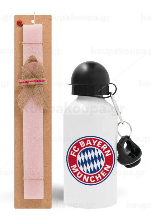 FC Bayern Munich, Easter Set, metallic aluminum bottle (500ml) & aromatic flat Easter candle (30cm) (PINK)