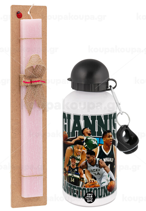 Giannis Antetokounmpo, Easter Set, metallic aluminum bottle (500ml) & aromatic flat Easter candle (30cm) (PINK)