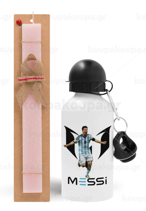 Lionel Messi, Easter Set, metallic aluminum bottle (500ml) & aromatic flat Easter candle (30cm) (PINK)
