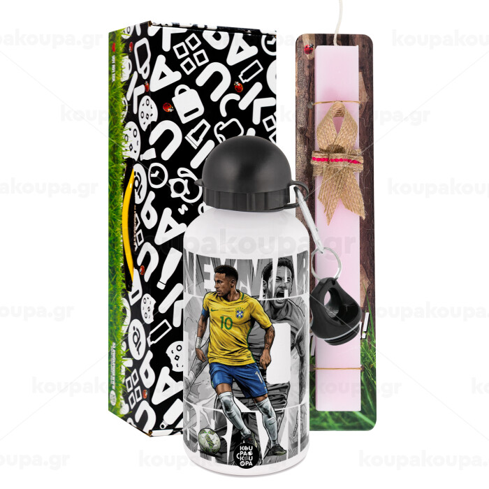 Neymar (Νεϊμάρ), Easter Set, metallic aluminum bottle (500ml) & aromatic flat Easter candle (30cm) (PINK)