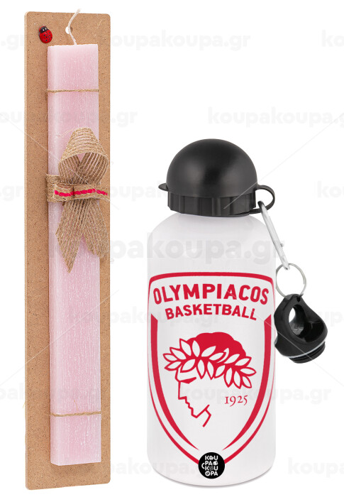 Olympiacos B.C., Easter Set, metallic aluminum bottle (500ml) & aromatic flat Easter candle (30cm) (PINK)