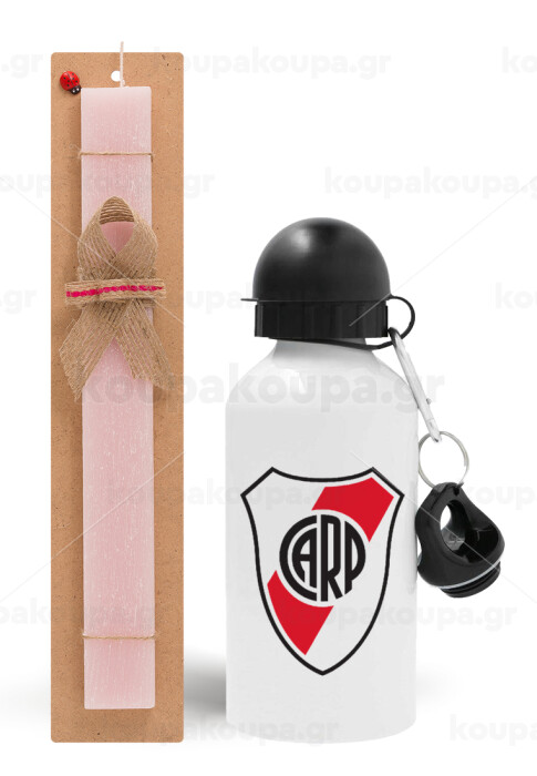 River Plate, Easter Set, metallic aluminum bottle (500ml) & aromatic flat Easter candle (30cm) (PINK)