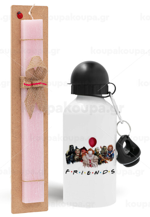 Halloween Friends, Easter Set, metallic aluminum bottle (500ml) & aromatic flat Easter candle (30cm) (PINK)