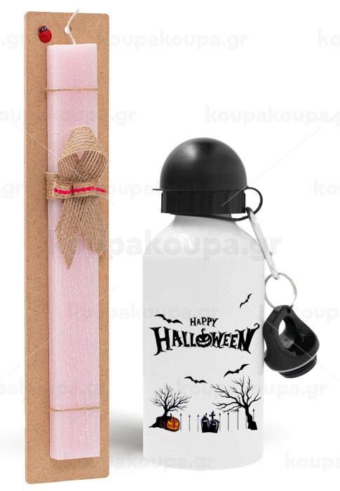 Happy Halloween cemetery, Easter Set, metallic aluminum bottle (500ml) & aromatic flat Easter candle (30cm) (PINK)