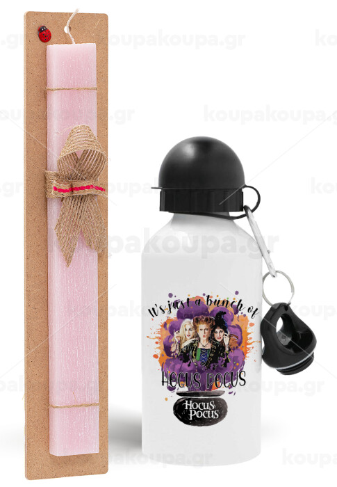Hocus Pocus, Easter Set, metallic aluminum bottle (500ml) & aromatic flat Easter candle (30cm) (PINK)