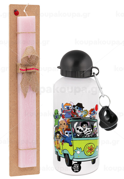 Stitch Halloween scooby car, Easter Set, metallic aluminum bottle (500ml) & aromatic flat Easter candle (30cm) (PINK)