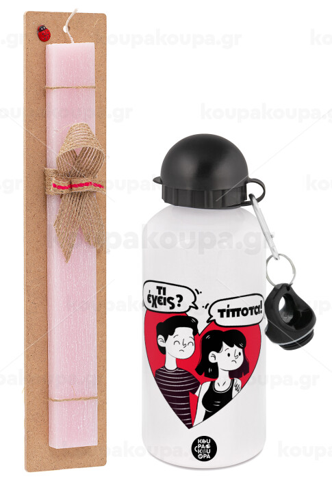 Τι έχεις? Τίποτα!, Easter Set, metallic aluminum bottle (500ml) & aromatic flat Easter candle (30cm) (PINK)