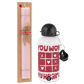 Τρίλιζα you won my heart, Easter Set, metallic aluminum bottle (500ml) & aromatic flat Easter candle (30cm) (PINK)