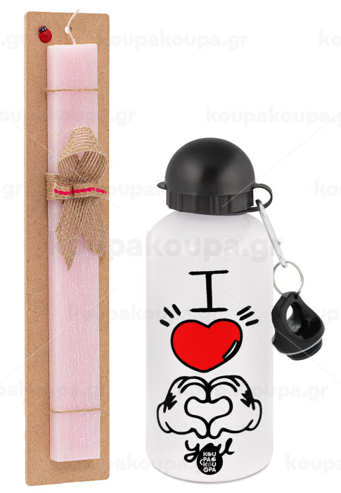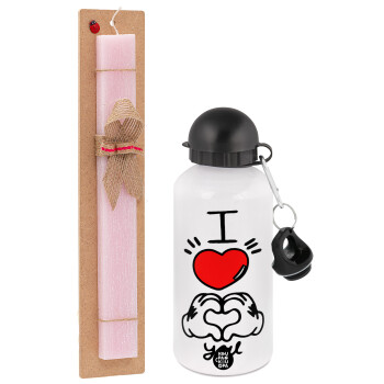 comics hands love, Easter Set, metallic aluminum bottle (500ml) & aromatic flat Easter candle (30cm) (PINK)