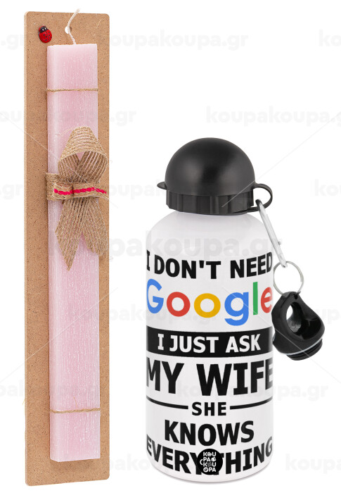 I don't need Google, just ask my WIFE, Easter Set, metallic aluminum bottle (500ml) & aromatic flat Easter candle (30cm) (PINK)