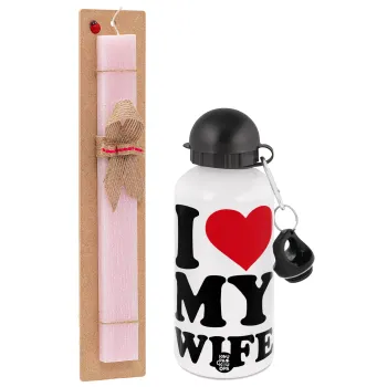 I Love my Wife, Easter Set, metallic aluminum bottle (500ml) & aromatic flat Easter candle (30cm) (PINK)