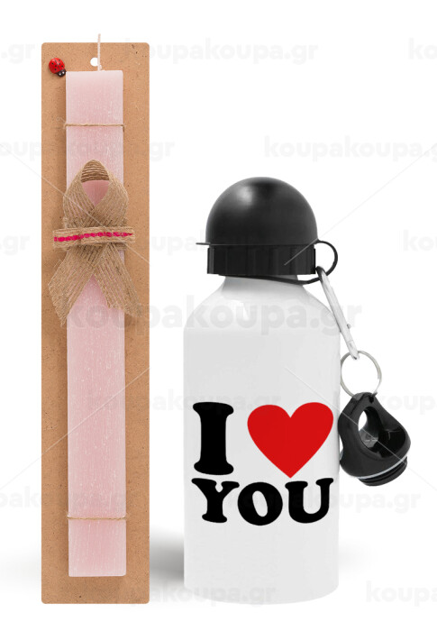 I LOVE YOU, Easter Set, metallic aluminum bottle (500ml) & aromatic flat Easter candle (30cm) (PINK)