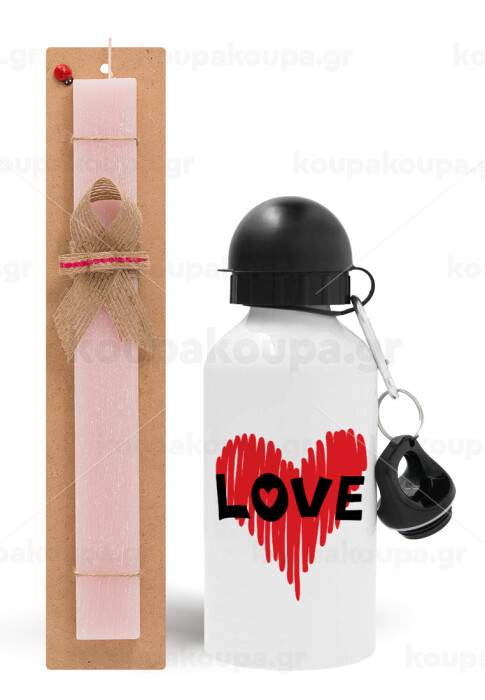 I Love You red heart, Easter Set, metallic aluminum bottle (500ml) & aromatic flat Easter candle (30cm) (PINK)