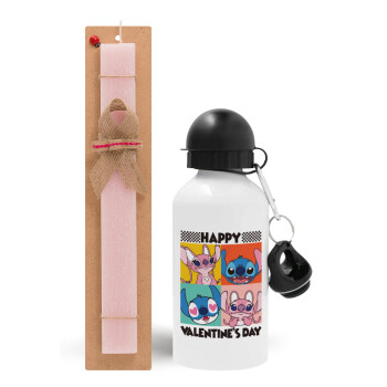 Lilo & Stitch Happy valentines day, Easter Set, metallic aluminum bottle (500ml) & aromatic flat Easter candle (30cm) (PINK)