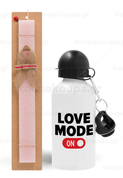 LOVE MODE ON, Easter Set, metallic aluminum bottle (500ml) & aromatic flat Easter candle (30cm) (PINK)