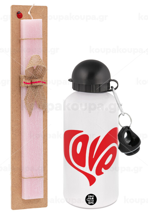 Love, Easter Set, metallic aluminum bottle (500ml) & aromatic flat Easter candle (30cm) (PINK)