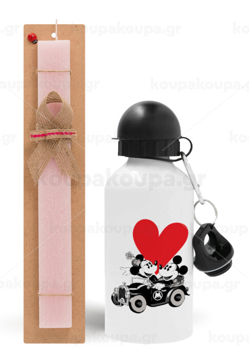 Mickey & Minnie love car, Easter Set, metallic aluminum bottle (500ml) & aromatic flat Easter candle (30cm) (PINK)