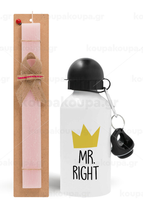 Mr right, Easter Set, metallic aluminum bottle (500ml) & aromatic flat Easter candle (30cm) (PINK)