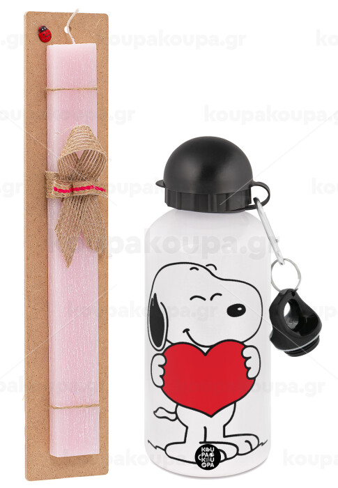 Snoopy takemy heart, Easter Set, metallic aluminum bottle (500ml) & aromatic flat Easter candle (30cm) (PINK)