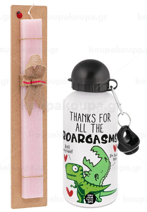 Thanks for all the ROARGASMS, Easter Set, metallic aluminum bottle (500ml) & aromatic flat Easter candle (30cm) (PINK)