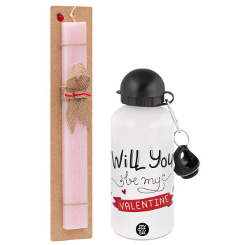 Will you be my Valentine???, Easter Set, metallic aluminum bottle (500ml) & aromatic flat Easter candle (30cm) (PINK)