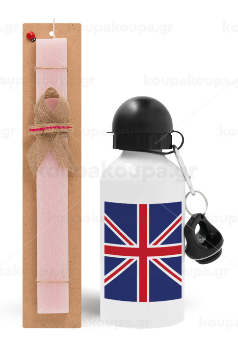 UK Flag, Easter Set, metallic aluminum bottle (500ml) & aromatic flat Easter candle (30cm) (PINK)