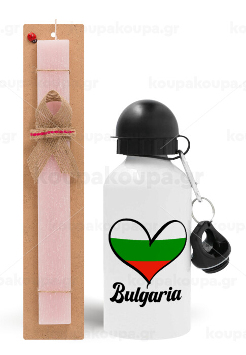 Bulgaria flag, Easter Set, metallic aluminum bottle (500ml) & aromatic flat Easter candle (30cm) (PINK)