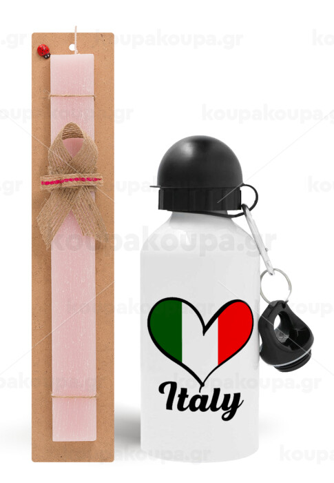 Italy flag, Easter Set, metallic aluminum bottle (500ml) & aromatic flat Easter candle (30cm) (PINK)