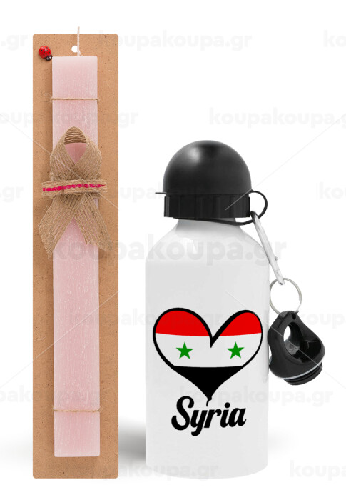Syria flag, Easter Set, metallic aluminum bottle (500ml) & aromatic flat Easter candle (30cm) (PINK)