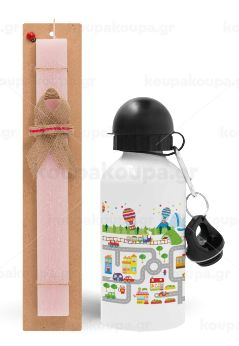 City road track maps, Easter Set, metallic aluminum bottle (500ml) & aromatic flat Easter candle (30cm) (PINK)