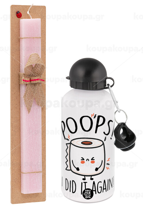 Poops!...I Did It Again, Easter Set, metallic aluminum bottle (500ml) & aromatic flat Easter candle (30cm) (PINK)