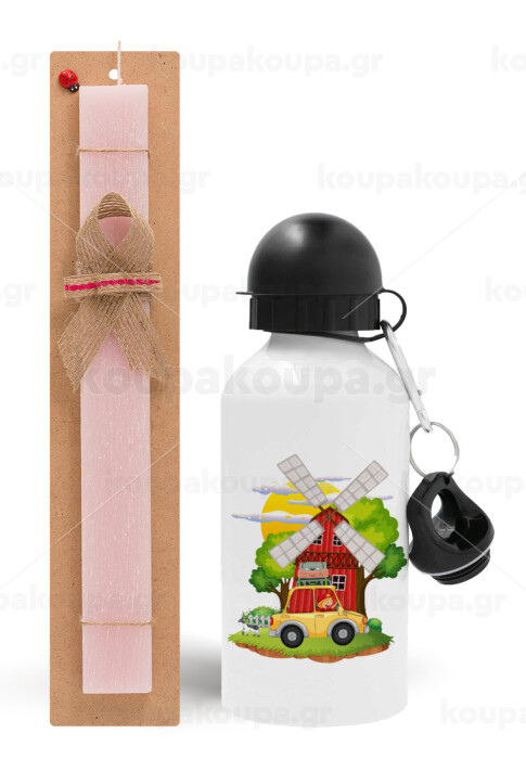 Toy car, Easter Set, metallic aluminum bottle (500ml) & aromatic flat Easter candle (30cm) (PINK)