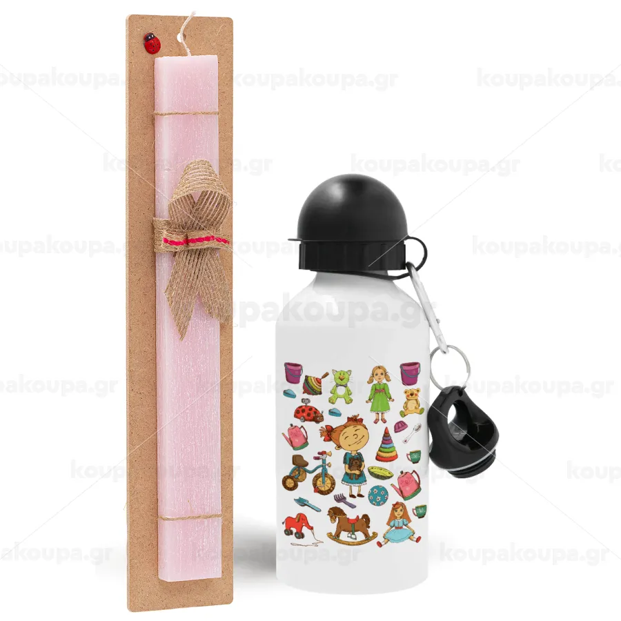 Toys Girl, Easter Set, metallic aluminum bottle (500ml) & aromatic flat Easter candle (30cm) (PINK)