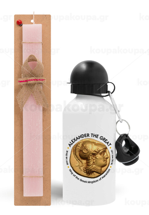 Alexander the Great, Easter Set, metallic aluminum bottle (500ml) & aromatic flat Easter candle (30cm) (PINK)