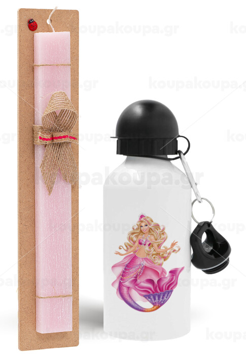 Barbie mermaid blue, Easter Set, metallic aluminum bottle (500ml) & aromatic flat Easter candle (30cm) (PINK)