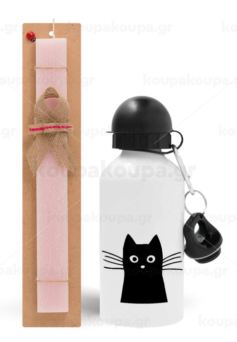 Black Cat, Easter Set, metallic aluminum bottle (500ml) & aromatic flat Easter candle (30cm) (PINK)