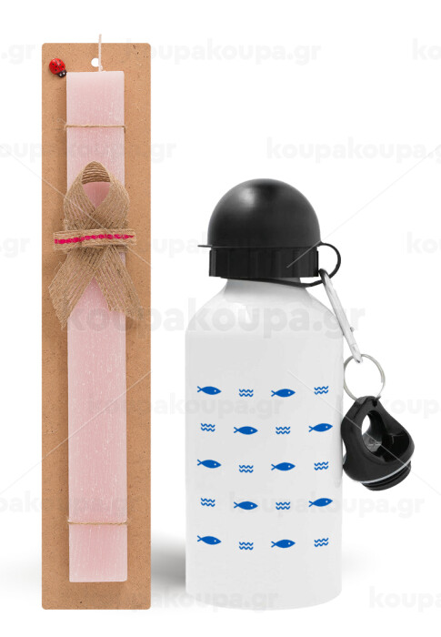Fishing, Easter Set, metallic aluminum bottle (500ml) & aromatic flat Easter candle (30cm) (PINK)
