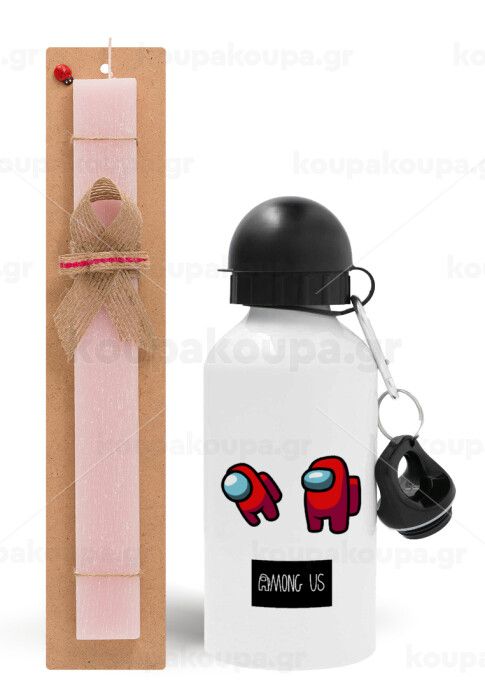 Among US, Easter Set, metallic aluminum bottle (500ml) & aromatic flat Easter candle (30cm) (PINK)