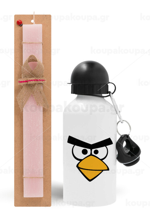 Angry birds eyes, Easter Set, metallic aluminum bottle (500ml) & aromatic flat Easter candle (30cm) (PINK)