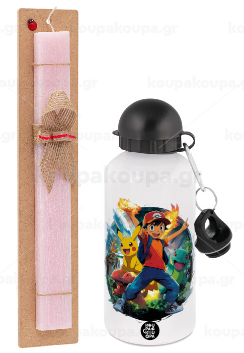 Ash Ketchum & Pikachu, Easter Set, metallic aluminum bottle (500ml) & aromatic flat Easter candle (30cm) (PINK)