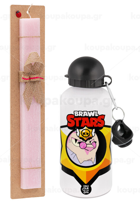 Brawl Stars Byron, Easter Set, metallic aluminum bottle (500ml) & aromatic flat Easter candle (30cm) (PINK)