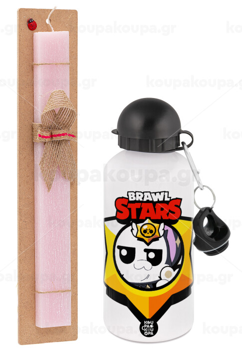 Brawl Stars Kit, Easter Set, metallic aluminum bottle (500ml) & aromatic flat Easter candle (30cm) (PINK)