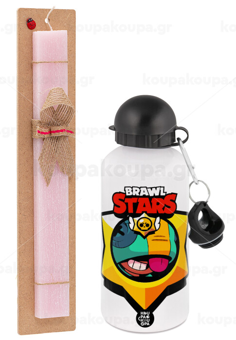 Brawl Stars Leon, Easter Set, metallic aluminum bottle (500ml) & aromatic flat Easter candle (30cm) (PINK)