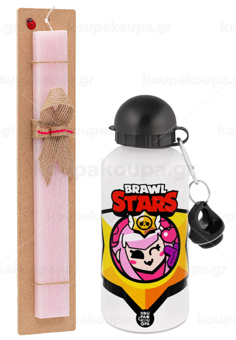 Brawl Stars Melodie, Easter Set, metallic aluminum bottle (500ml) & aromatic flat Easter candle (30cm) (PINK)