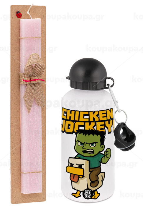 Chicken Jockey, Easter Set, metallic aluminum bottle (500ml) & aromatic flat Easter candle (30cm) (PINK)